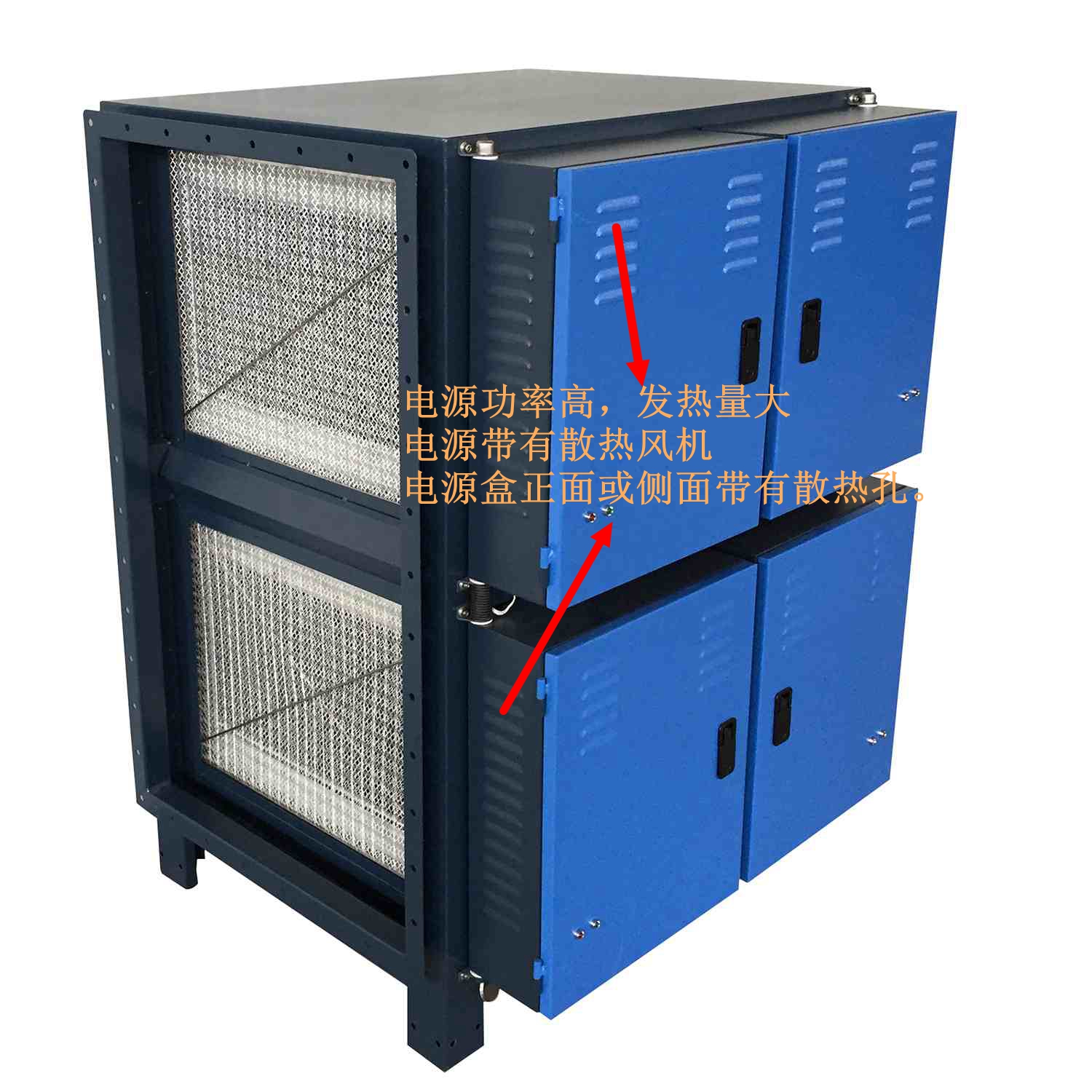 (1)收集部分模塊化,為高低壓極板式設(shè)計(jì),比蜂窩狀更易清洗,使用更方便。不需要經(jīng)常調(diào)整電極,高低壓分體設(shè)計(jì),使清洗和維護(hù)更加方便。